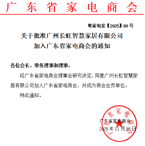 关于批准广州长虹智慧家居有限公司加入广东省家电商会的通知
