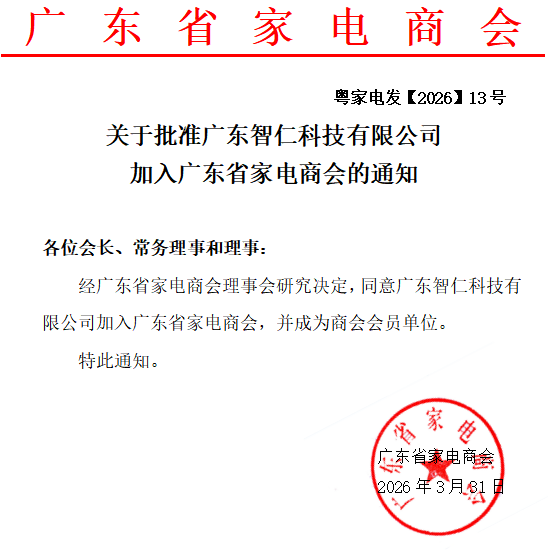 关于批准广东智仁科技有限公司加入广东省家电商会的通知