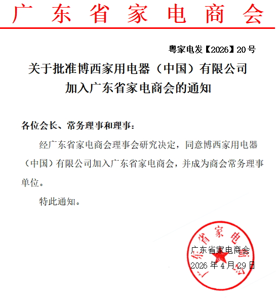 关于批准博西家用电器(中国)有限公司加入广东省家电商会的通知