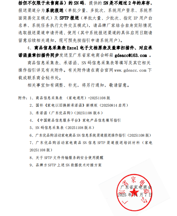 附件7:广东优品购活动家电商品SN信息SFTP渠道报送培训材料(家电20251108版)(1).docx
