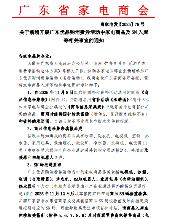 重要通知丨关于开展广东优品购消费券活动中家电商品及SN入库等相关事宜的通知